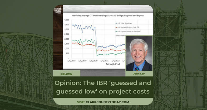 Opinion: The IBR ‘guessed and guessed low’ on project costs Rep. John Ley continues to question multiple numbers on the I-5 Bridge replacement project John Ley for Clark County TodayDate: Thursday, June 19, 2025 When Lars Larson and I spoke a couple weeks ago, we talked about the fact that Program Administrator Greg Johnson and his Interstate Bridge Replacement […]